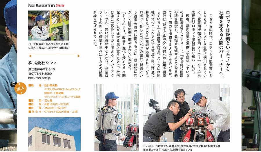 URALA「2017年10月号」特集明日のものづくりを担う若者たち。FUKUI工業系WORKERSにて、当社の取り組みが紹介されました。 URALA「2017年10月号」 FBC『おじゃまっテレ ワイド&ニュース』で紹介されました。 前の記事 福井商工会議所「会報」2017年10月号で紹介されました。 次の記事